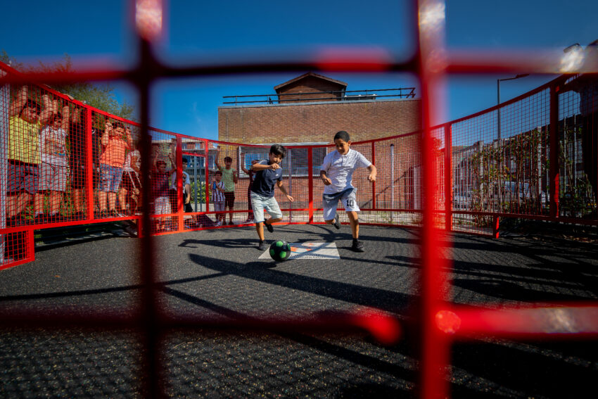 We nodigen organisaties uit om onze courts te gebruiken voor gym, buitenspelen, naschoolse activiteiten, trainingen, buurtprogramma’s en speciale lessen. Want ieder veld dat gebruikt wordt, is een kind dat meedoet. Samen zorgen we ervoor dat geen enkel kind aan de zijlijn staat.