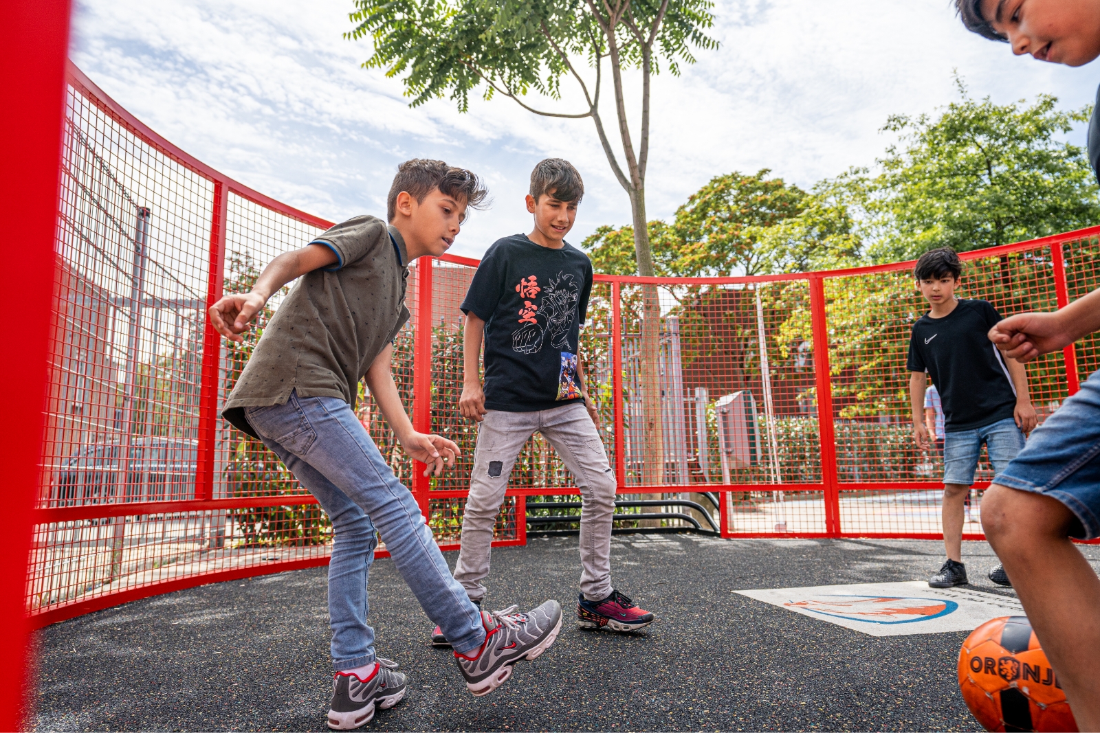 Onze ronde veldjes hebben weinig ruimte nodig, zijn hartstikke duurzaam, en maken een grote impact: ze geven een veilige speelplek in de buurt. Laagdrempelig, toegankelijk, voor iedereen. Een plek waar spelen vanzelf begint en waar kinderen elkaar ontmoeten.